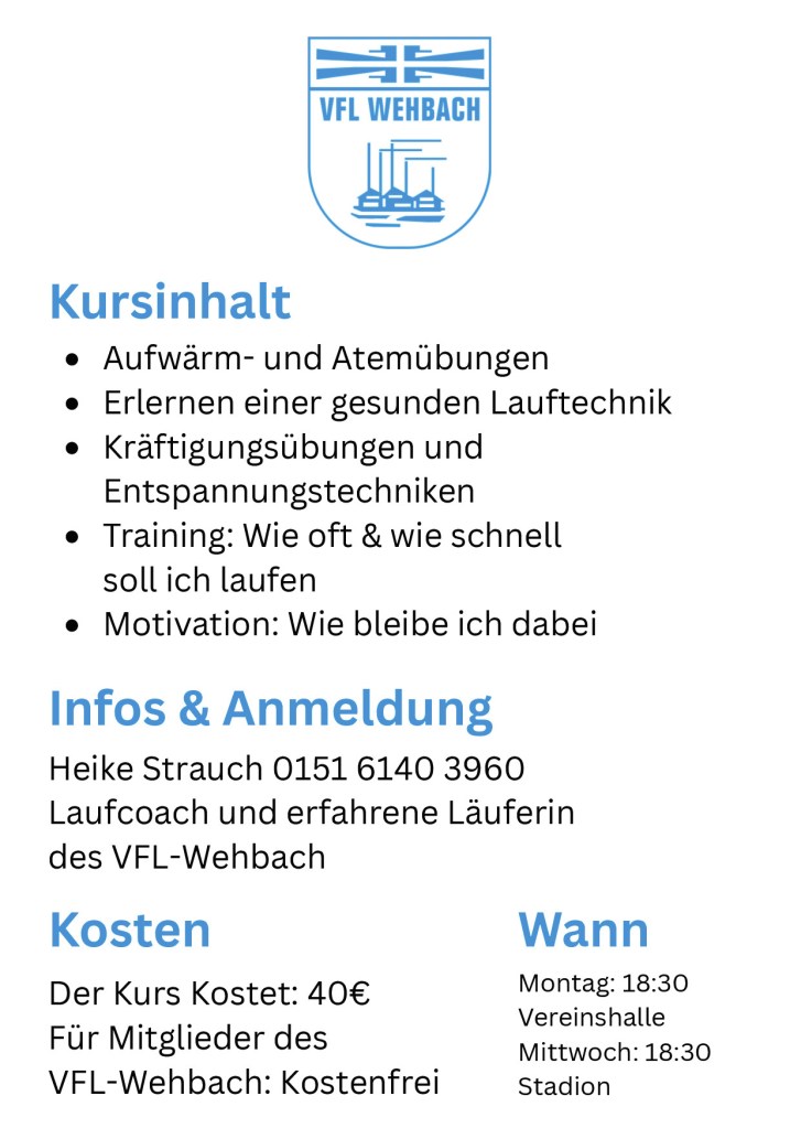 Geplant ist der Start am 02. März 2026. Trainingstage sind montags und mittwochs.